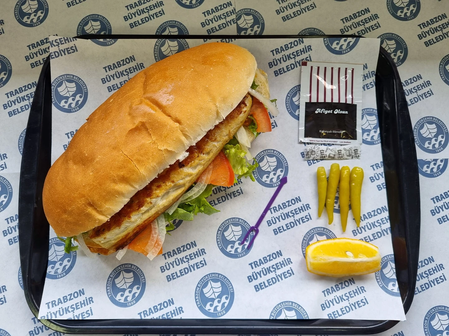 Sandviç ekmeği, uskumru balık, domates, soğan, marul yanında limon acı biber turşusu ile servis edilir.