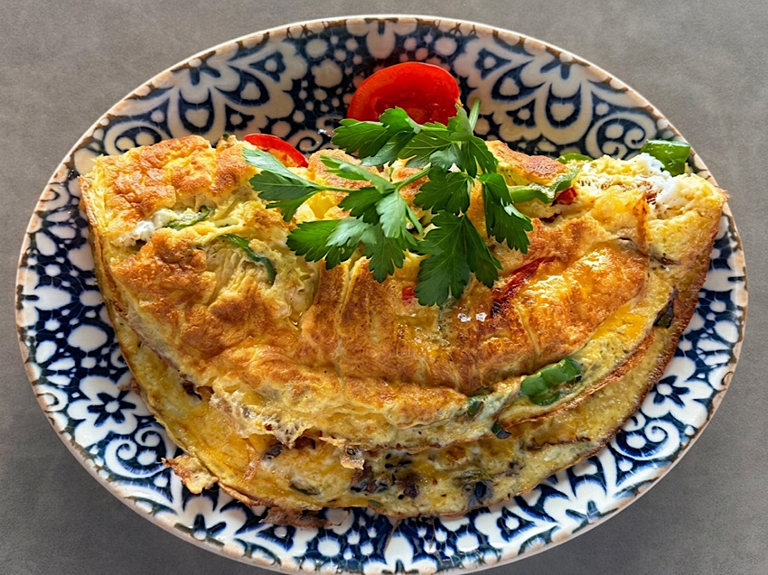 Yumurta, kapya, carlıston, mantar, domates, maydanoz, dereotu,