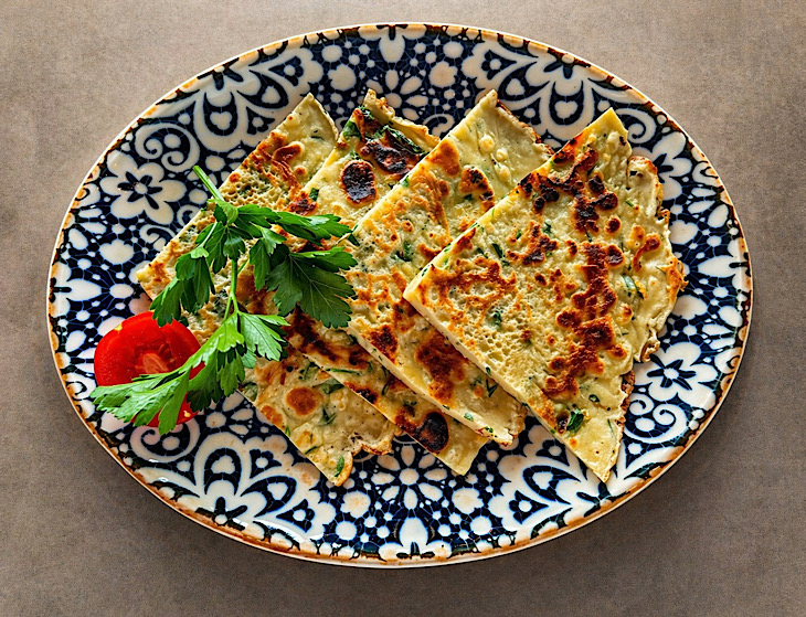 Yumurta, un, süt, taze soğan, maydanoz, nane ile hazırlanılır.