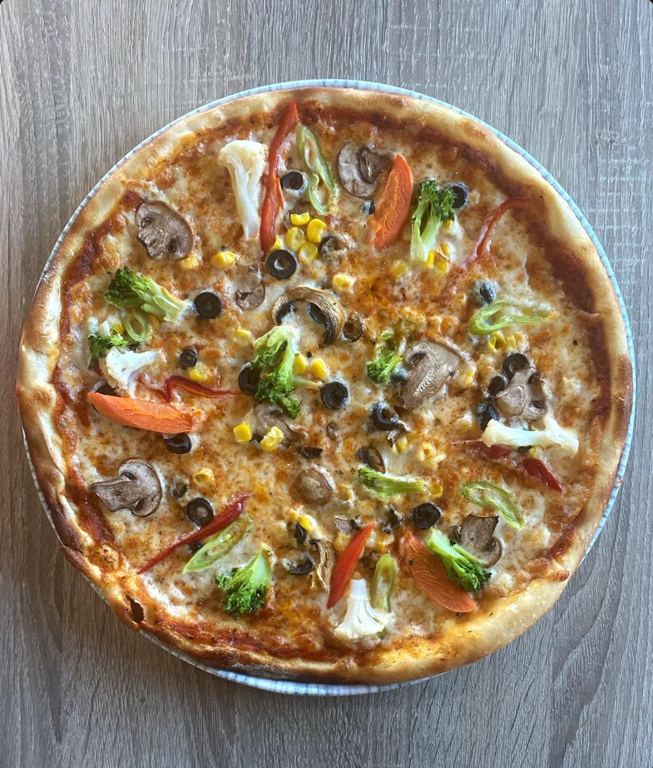Yeşil Biber, Kapya Biber, Brokoli, Havuç, Mantar, Mısır, Domates Sos, Mozarella, Karnabahar
