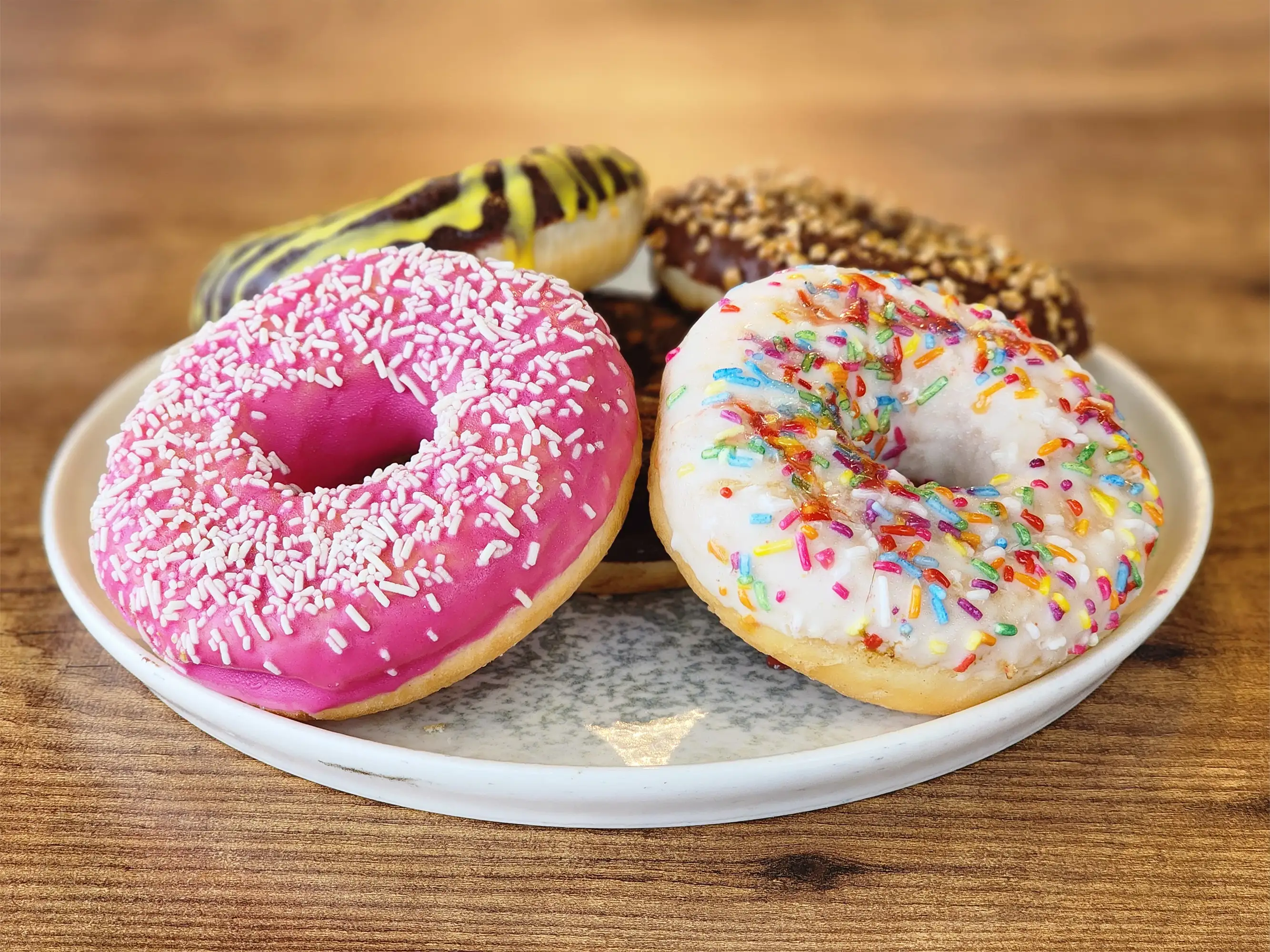 QUEEN V DONUT, NUTZILLA DONUT, FUNFETTI DONUT, DONUT COLOUR, STRAWJELLY DONUT, BISCOFF LOTUS DONUT